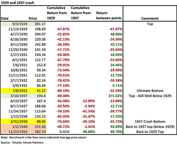 - The 1929 crash does have some similarities in price action. However, for a variety of reasons we believe comparisons to 1929 are unfounded and ignore a variety of key underlying fundamental economic drivers and government responses.