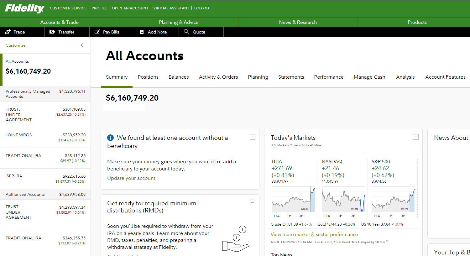 Fidelity’s online view: