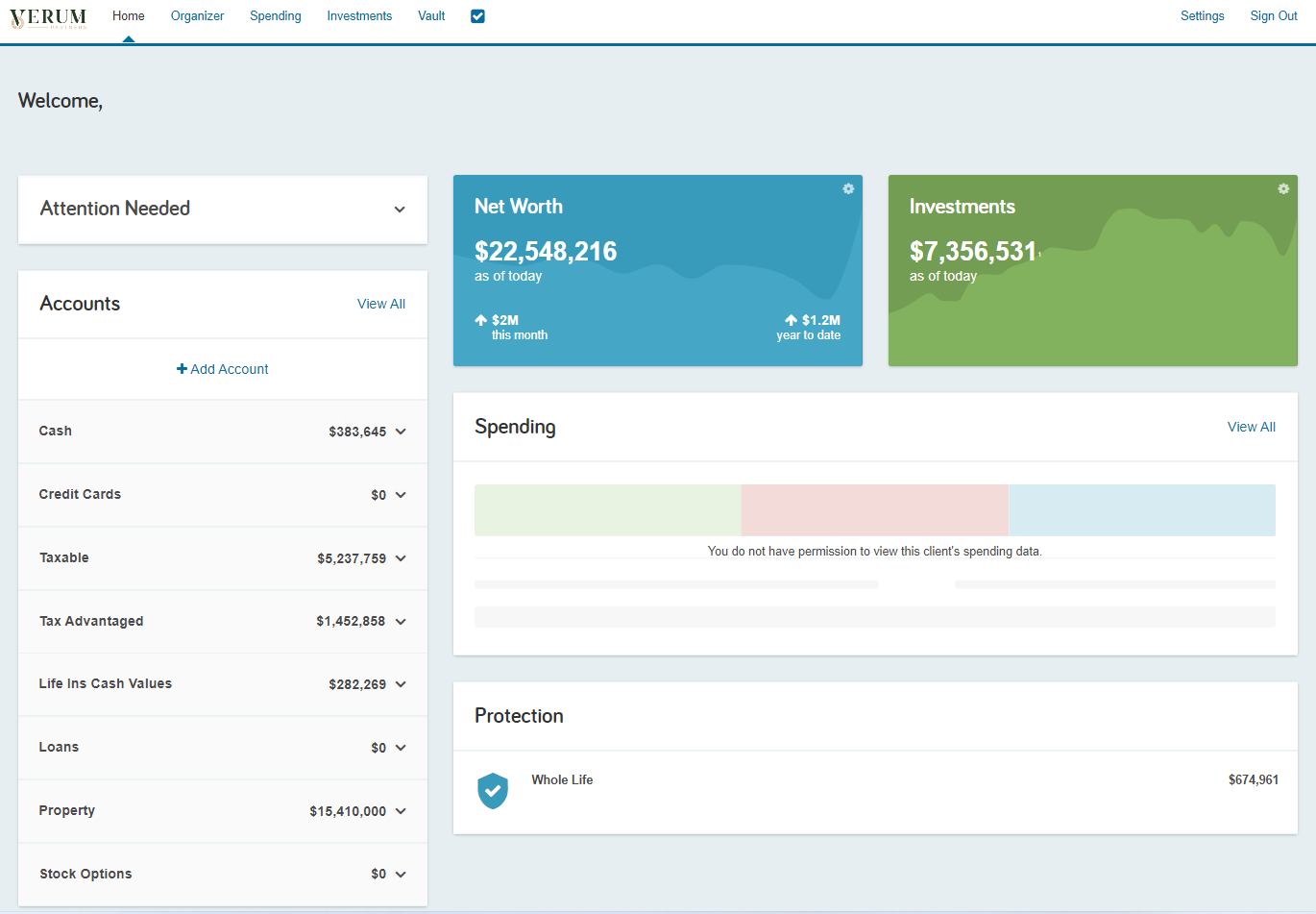 eMoney Advisor is the provider of our client portal software. This is one of the best tools Verum has to offer to get clients on the path to organization. The Portal allows you to see everything in one place, including accounts outside of Verum.