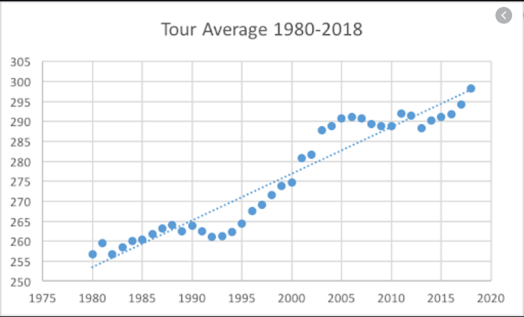PGA Tour Driving Distance Average 1980-2018